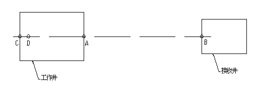 (1)、通視條件下的測量1.1.1使用交匯法引工作井及接收井預留洞口中心至各自的井壁。置經緯儀至A點,后視B點,作BA直線的延長線,并在工作井后部定出一點C。保證C、A、B在一條軸線上,置經緯儀在C點上,后視A點,在工作井井壁上定出一點A,,置激光經緯儀基座于井下D點,并抄平固定激光經緯儀架,置經緯儀于A點,后視B點,在激光經緯儀器架上定出D點,D點同A,,A,B點在豎直方向上成一直線,安裝激光經緯儀于儀器架上,對中D點,后視A,點,依設計軸線打好角度,既可定出軸線。